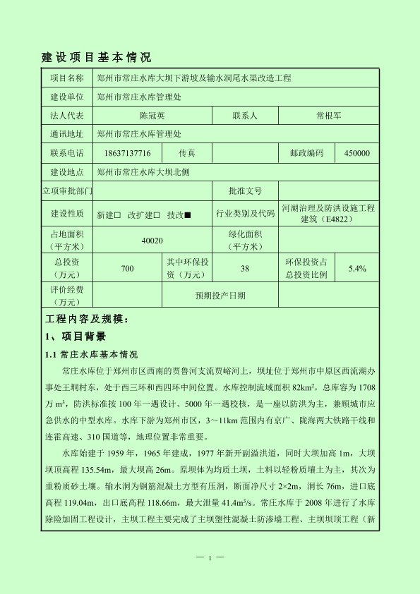 中原区-郑州市常庄水库大坝下游坡及输水洞尾水渠改造工程报告表6099.pdf