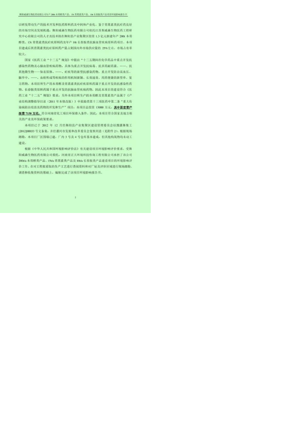 1、舞阳县产业集聚区-舞阳威森生物医药有限公司年产200t本芴醇类产品、15t青蒿素类产品、10t长春胺类产品项目报告书(1)6484