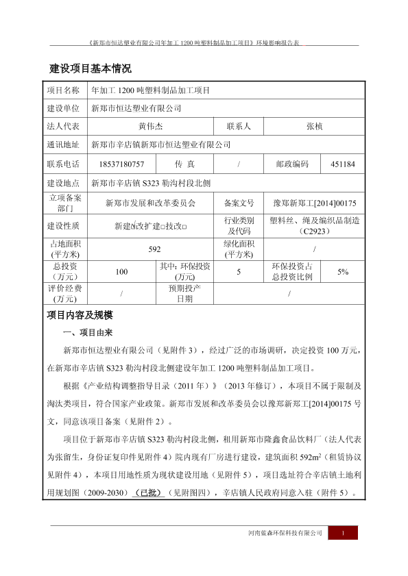 新郑市恒达塑业有限公司年加工1200吨塑料制品加工项目_29834.pdf