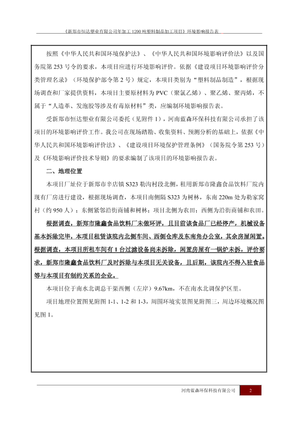 1、新郑市辛店镇-新郑市恒达塑业有限公司年加工1200吨塑料制品加工项目报告表8041