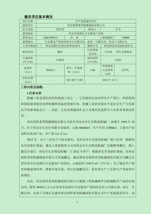 272西安煜阳重型机械制造有限公司生产基地建设项目报告表9512