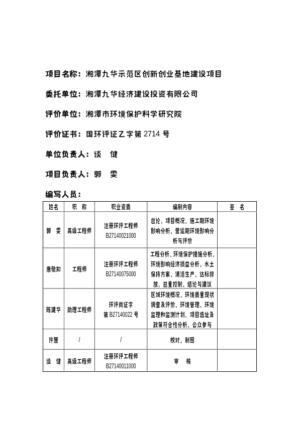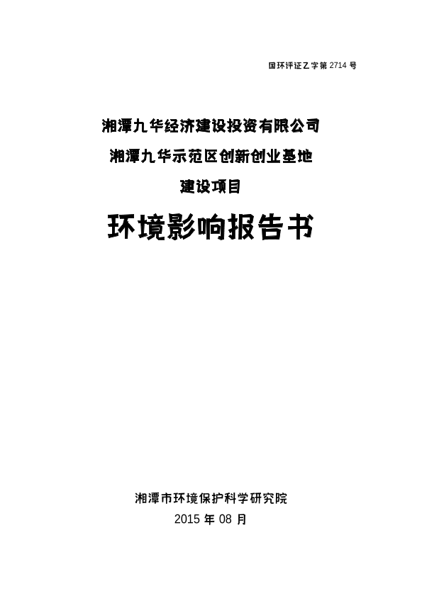 湘潭九华示范区创新创业基地建设项目审批受理公示 公开