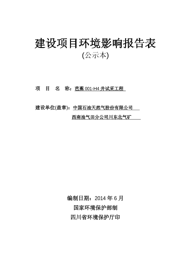 中石油天然气西南油气田分公司川东北气矿芭蕉001-h4井试采工程_35628.pdf