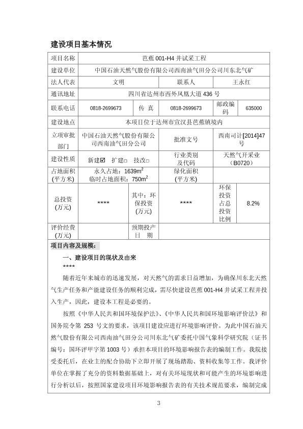 中石油天然气西南油气田分公司川东北气矿芭蕉001-h4井试采工程