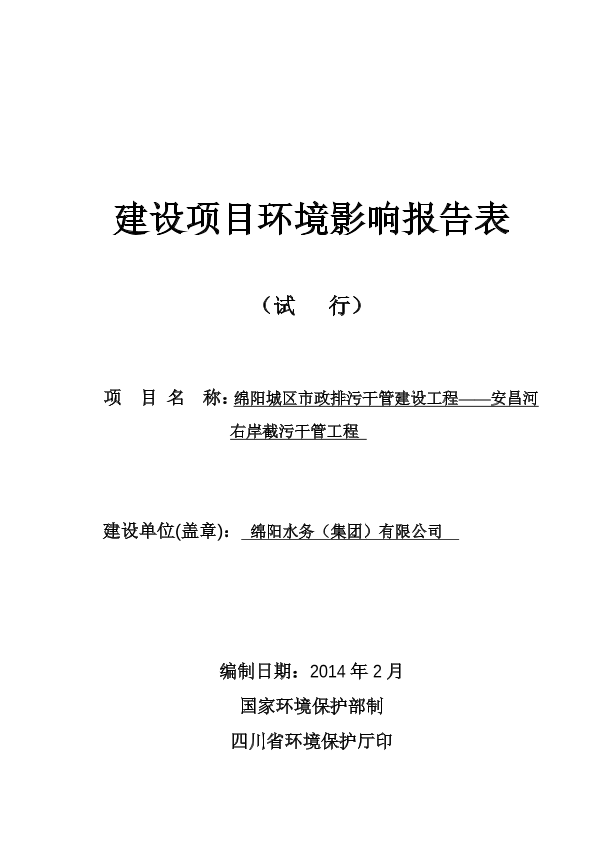 绵阳水务(集团)有限公司绵阳城区市政排污干管建设工程——安昌河右岸截污干管工程环境影响报告表3329.pdf