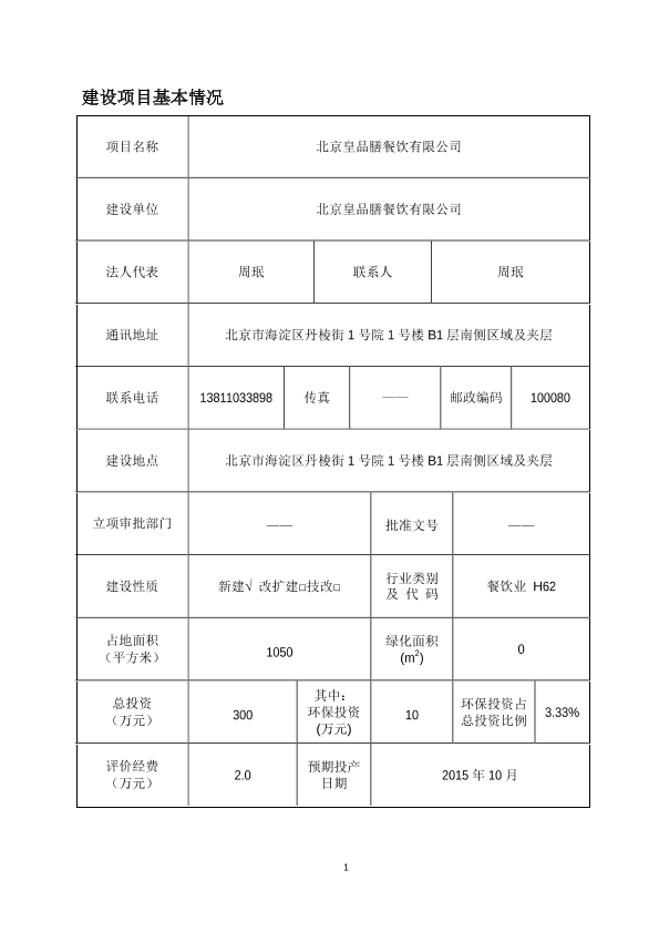 2、北京聚膳坊餐饮有限公司餐饮项目3276