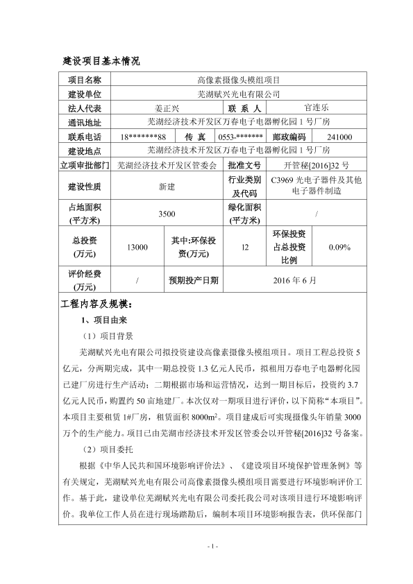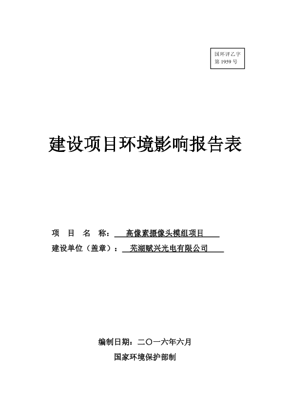 芜湖赋兴光电有限公司高像素摄像头模组项目环境影响报告表公示215577280.pdf
