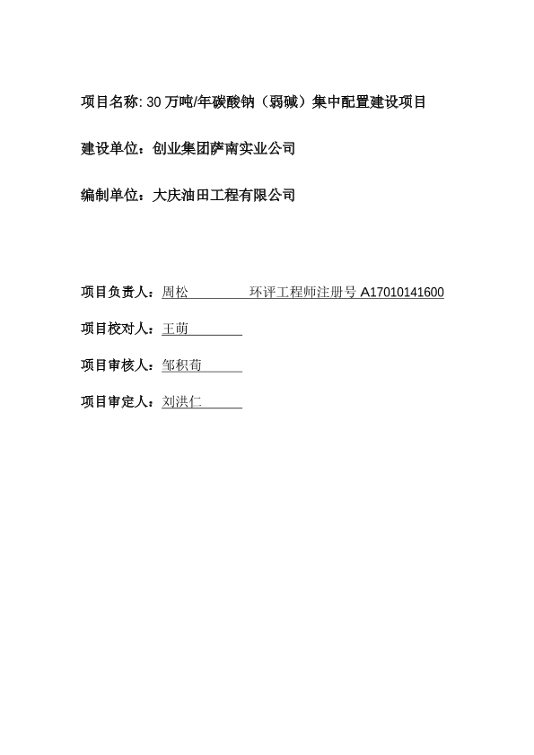 30万吨年碳酸钠(弱碱)集中配置建设项目3931