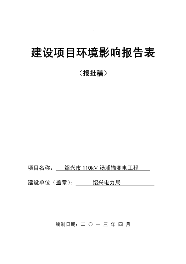 关于绍兴电力局绍兴市110kv汤浦输变电工程审批前公示_649036.pdf