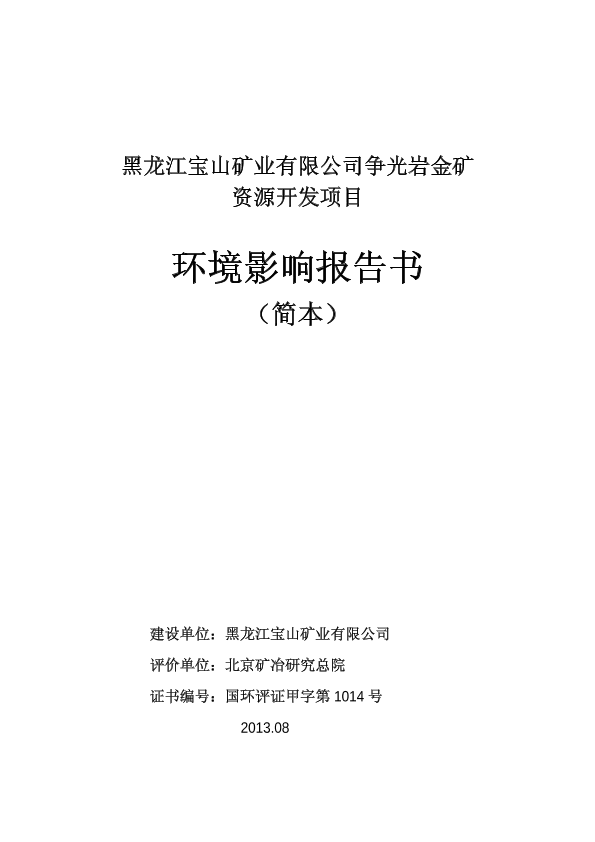 黑龙江宝山矿业有限公司争光岩金矿资源开发项目环境影响报告书_11229.pdf