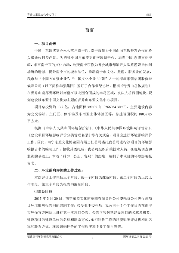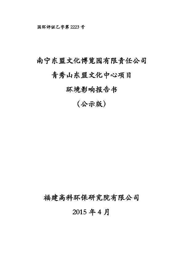 2、南宁市环保局青秀山分局南宁东盟文化博览园项目