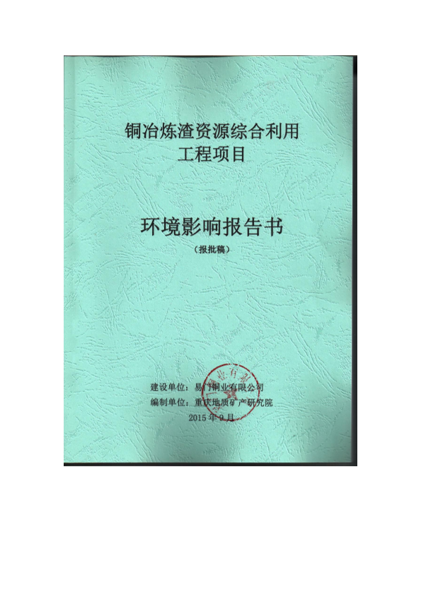 铜冶炼渣资源综合利用工程项目811257072 公开