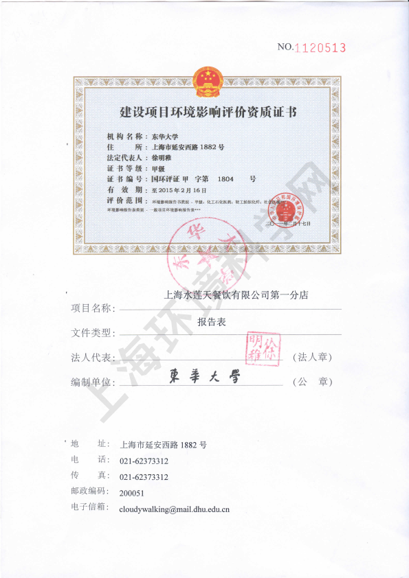 1、上海以水以鱼餐饮管理有限公司第一分公司1501