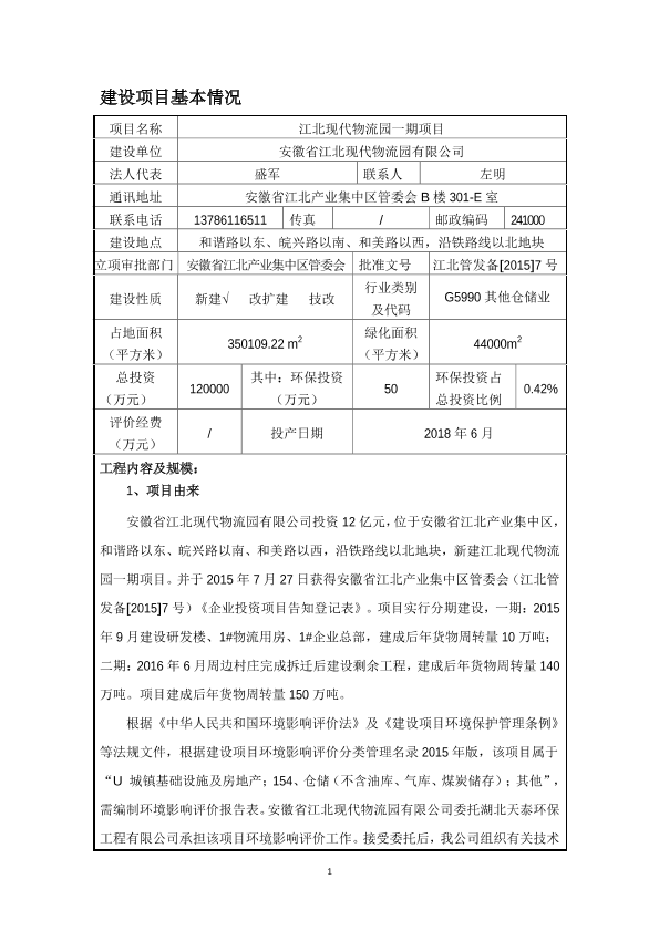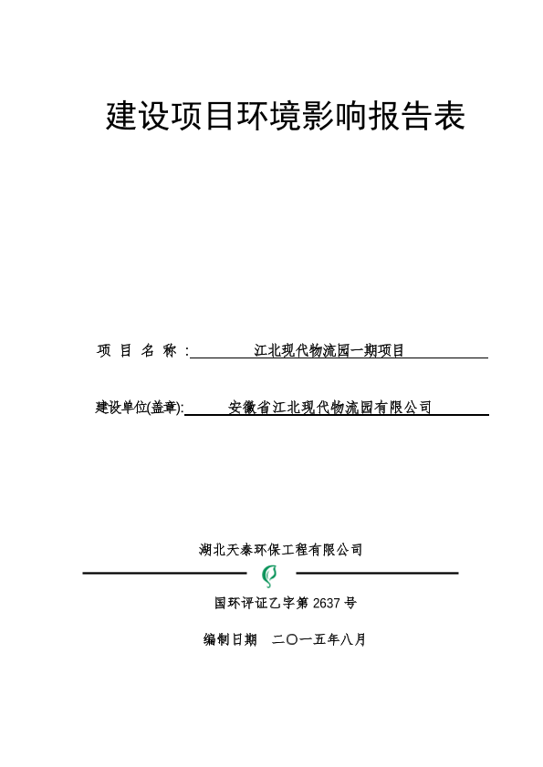 安徽省江北现代物流园有限公司江北现代物流园一期项目环境影响报告表公示a70959a1757.pdf