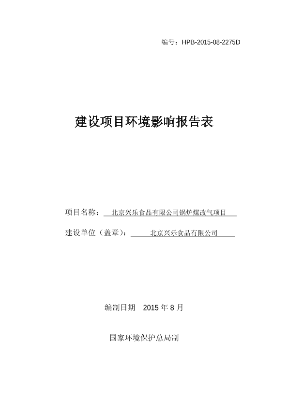 北京兴乐食品有限公司锅炉煤改气项目a92003a3031