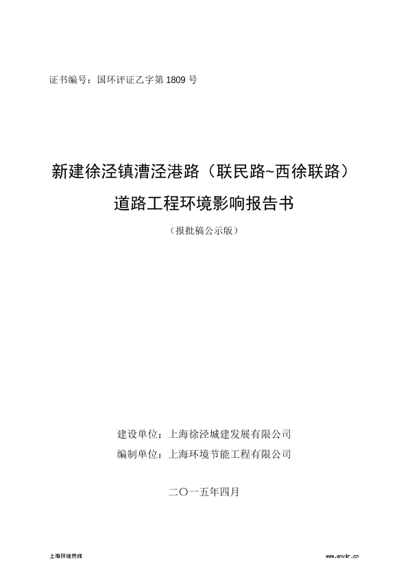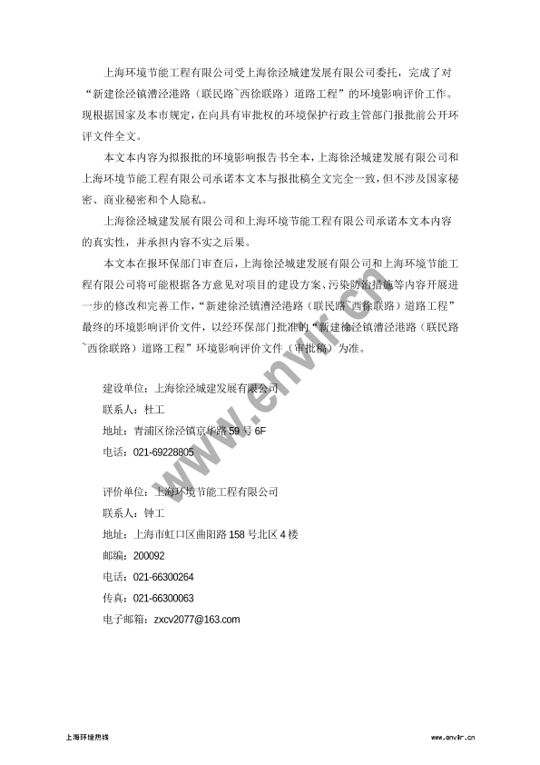 1、青浦区徐泾镇西区纬二路(徐盈路-叶联路)道路新建工程环境影响评价报批前公示3048