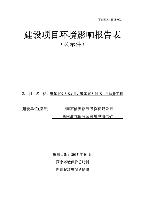中国石油天然气股份有限公司西南油气田分公司川中油气矿磨溪009-3-X3井和008-20-X1井钻井工程6928.pdf