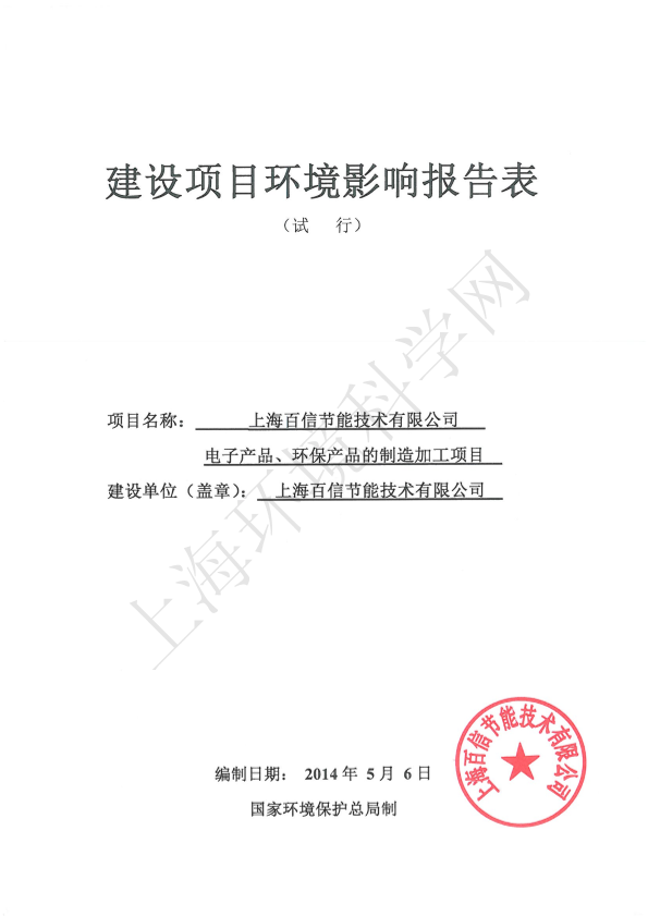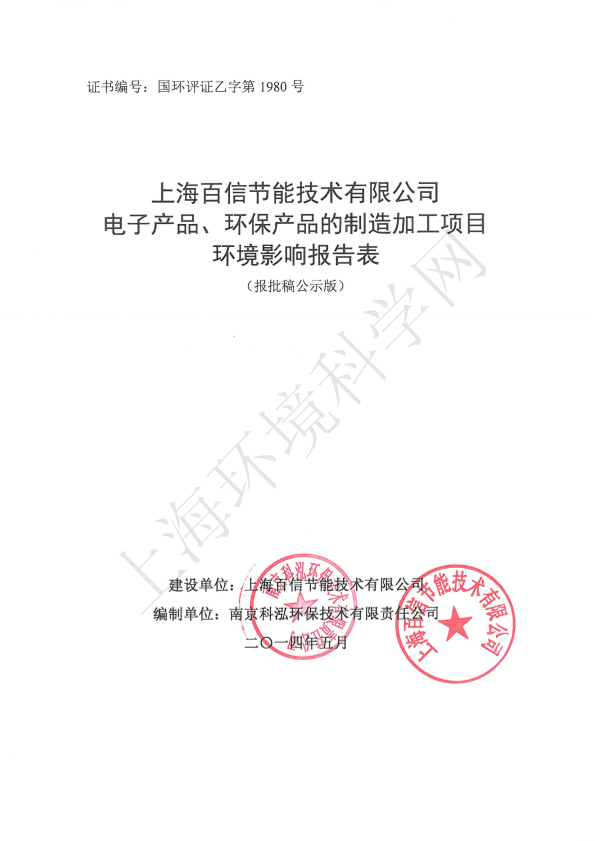 上海百信节能技术有限公司电子产品、环保产品的制造加工项目1521
