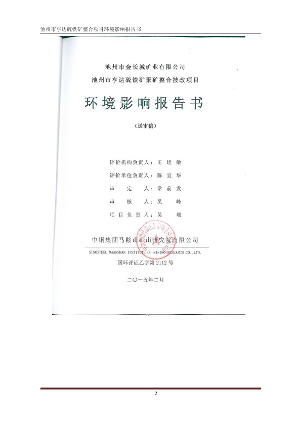 《池州市金长城矿业有限公司池州市亨达硫铁矿采矿整合技改项目环境影响报告书》受理公示a17156a9793.pdf