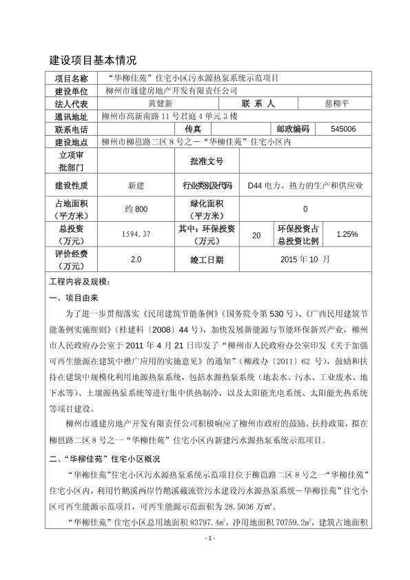 华柳佳苑住宅小区污水源热泵系统示范项目环境影响报告表审批288272457.pdf