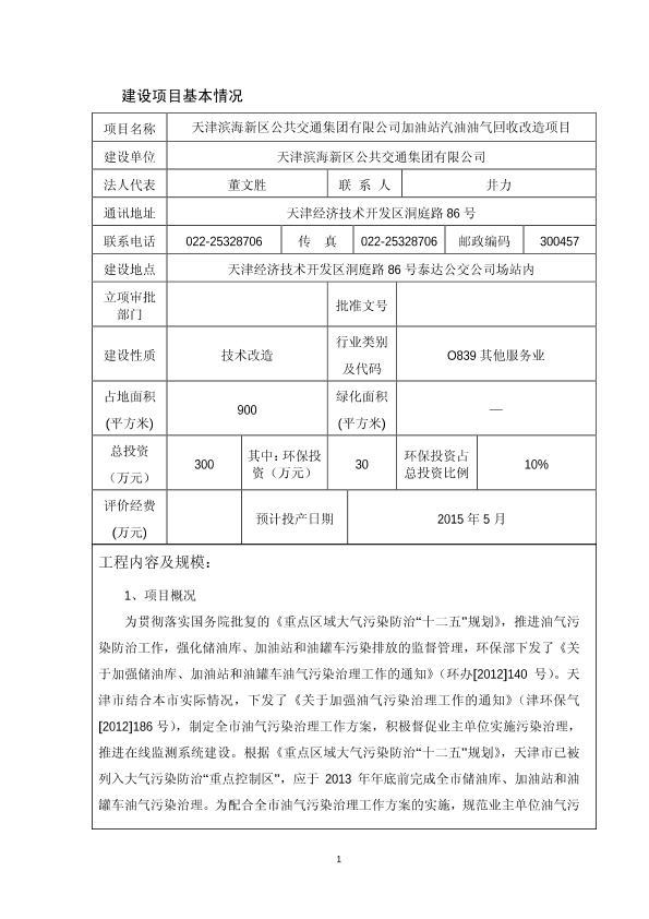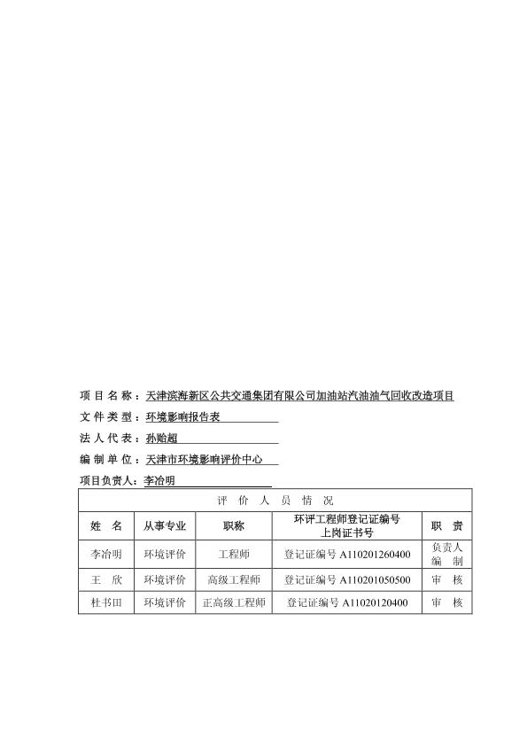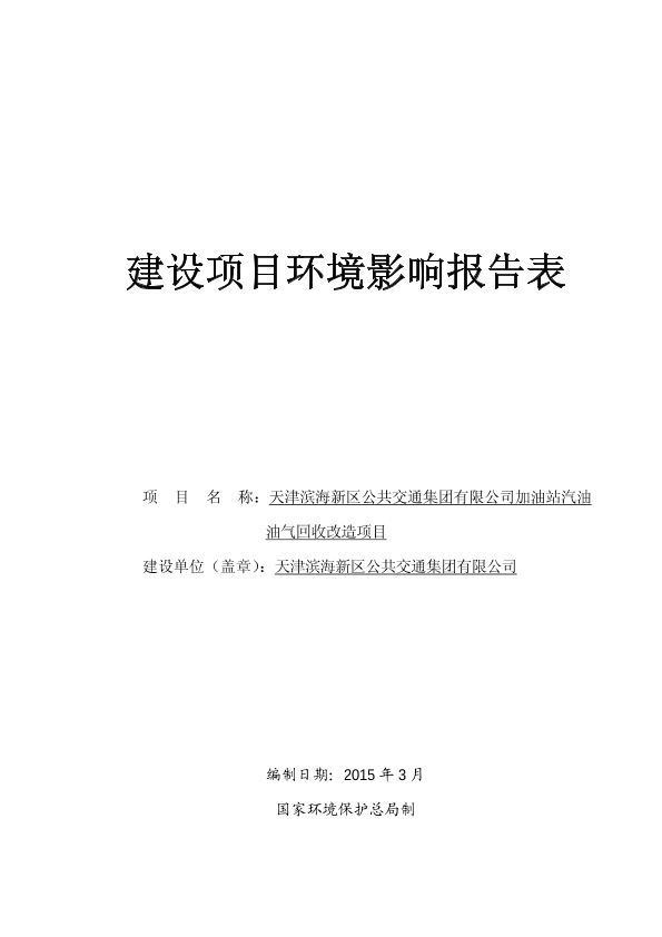 天津滨海新区公共交通集团有限公司加油站汽油油气回收改造项目环境影响报告表受理情况6298