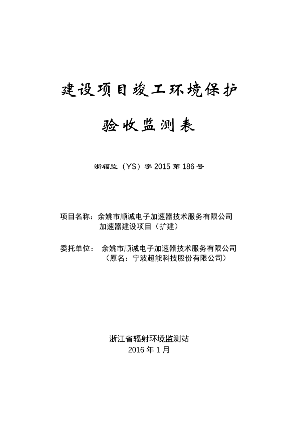 余姚市顺诚电子加速器技术服务有限公司加速器建设项目(扩建)351647239