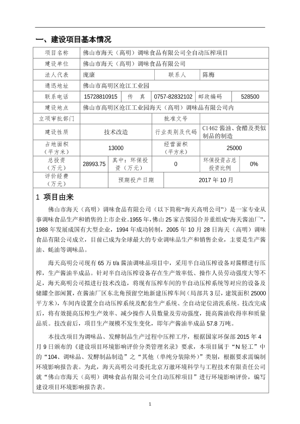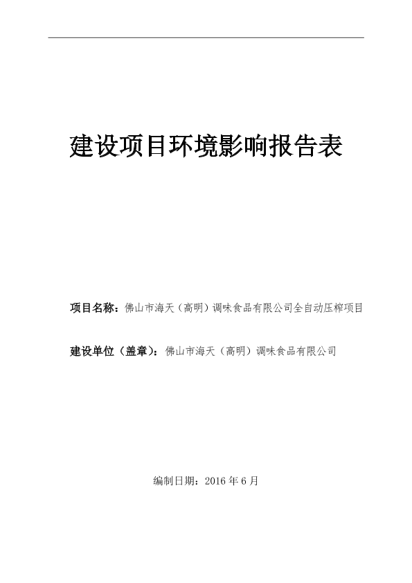佛山市海天(高明)调味食品有限公司全自动压榨项目环境影响报告表_5018.pdf