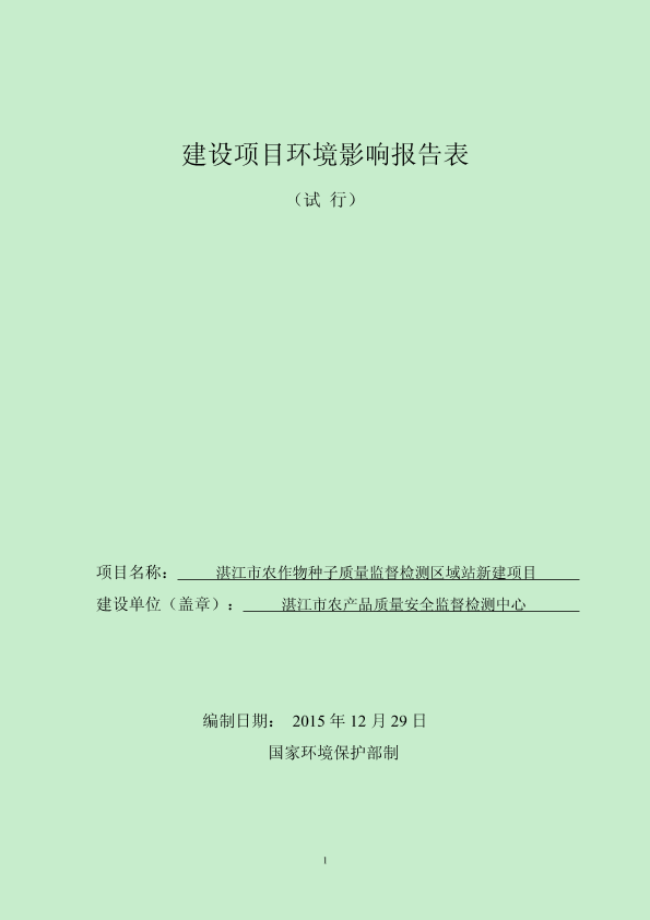 湛江市农产品质量安全监督检测中心湛江市农作物种子质量监督检测区域站新建建设项目环境影响报告表受理公告_8115.pdf