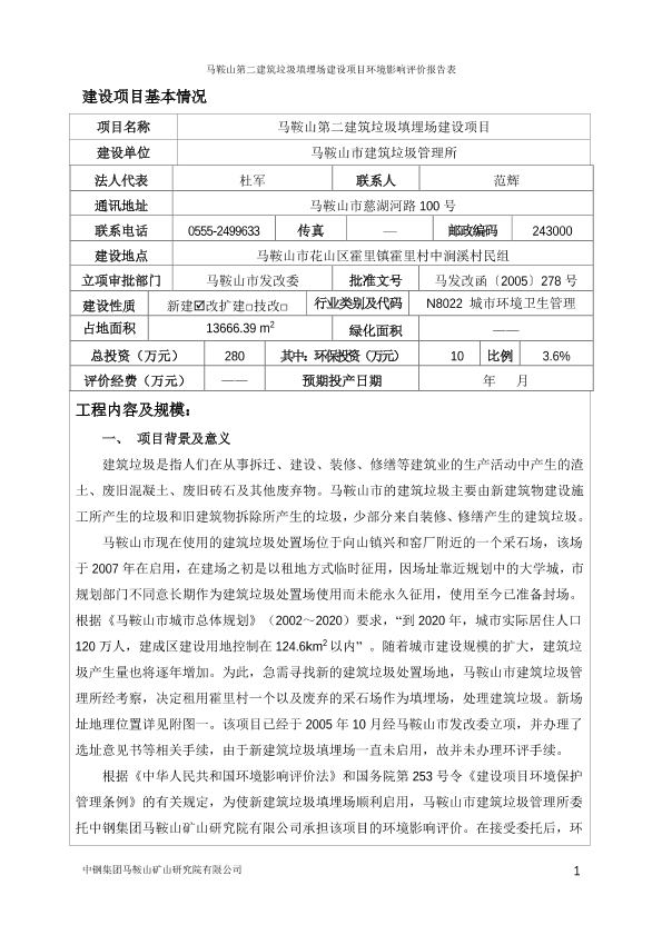 1、《马鞍山市建筑垃圾管理所马鞍山第二建筑垃圾填埋场建设项目环境影响报告表》审批前公示a27163a5219