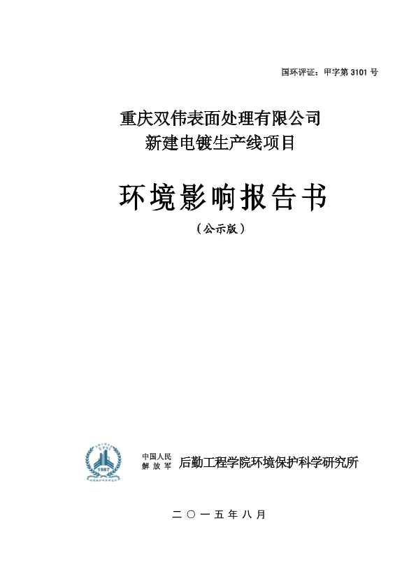 1、重庆双鑫表面处理有限公司新建电镀生产线项目9362