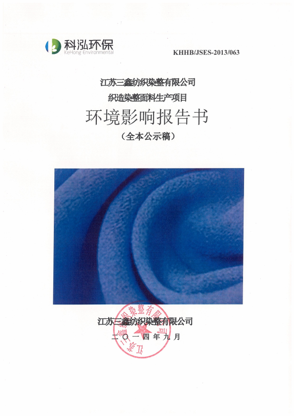 1、江苏三鑫纺织染整有限公司织造染整面料生产项目环境影响评价全本公示