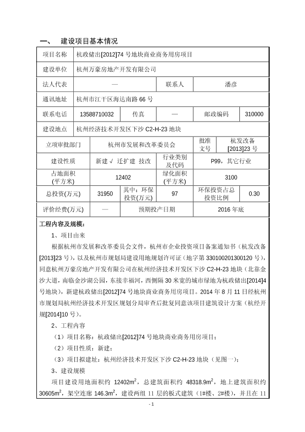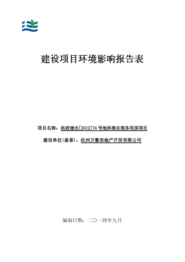 杭州万豪房地产开发有限公司杭政储出[2012]74号地块商业商务用房项目_606016.pdf