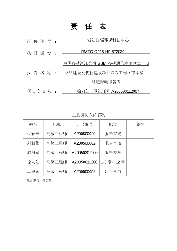 5、中国移动嘉兴分公司gsm移动通信本地网十六期工程环境影响报告书...