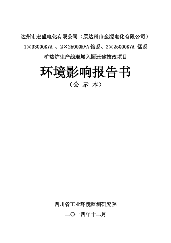 达州市宏盛电化有限公司(原达州市金源电化有限公司)1_33000kva、2_25000kva铬系、2_25000kva锰系矿热炉生产线退城入园迁建技改项目_31997.pdf