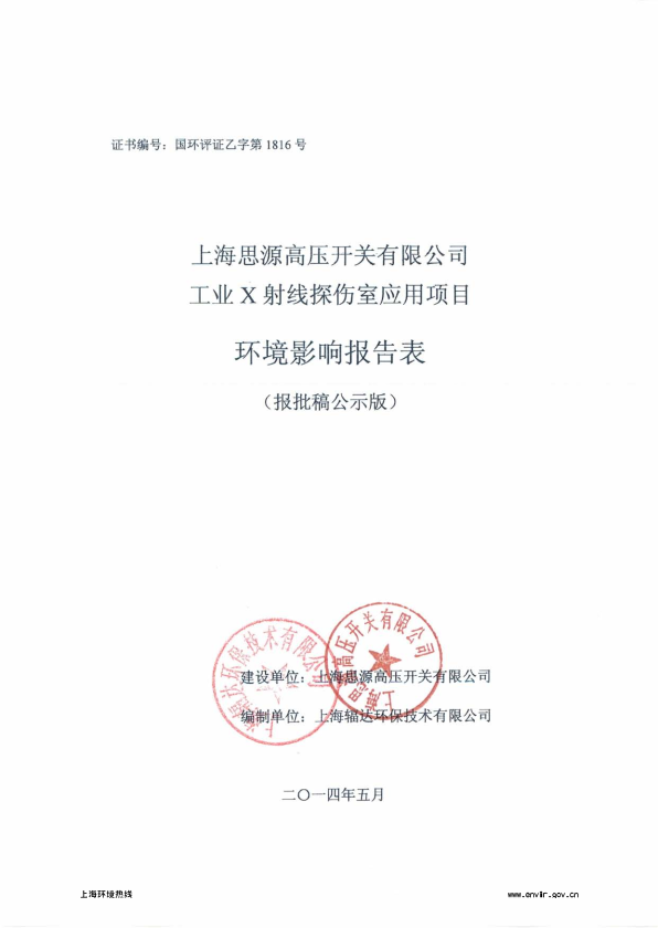 上海思源高压开关有限公司工业X射线探伤室应用项目1128.pdf