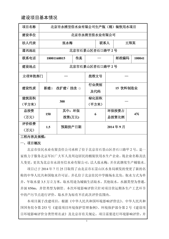 北京市永清至信水业有限公司生产瓶(桶)装饮用水项目9936.pdf