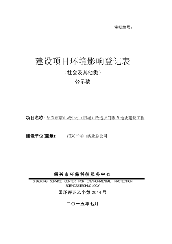 4、关于绍兴市塔山实业总公司绍兴市塔山城中村改造罗门畈地块建设项目审批前公示