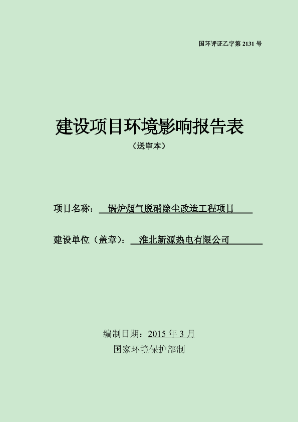 《淮北新源热电有限公司锅炉烟气脱硝除尘改造工程环境影响报告表》受理公示a88994a7035.pdf