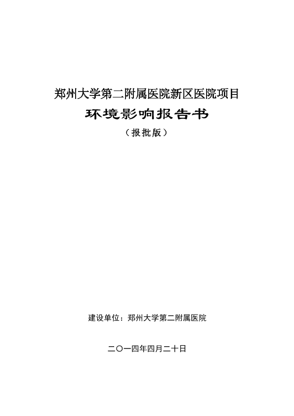 经开区-郑州大学第二附属医院郑州大学第二附属医院新区医院报告书5586 公开