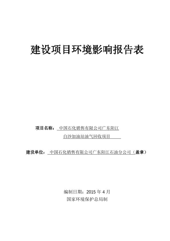 关于中国石化销售有限公司广东阳江白沙加油站油气回收建设项目环境影响登记表_1386.pdf