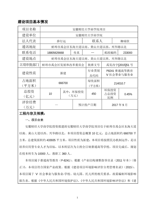 《安徽财经大学商学院项目环境影响报告表》受理公示a46274a4837