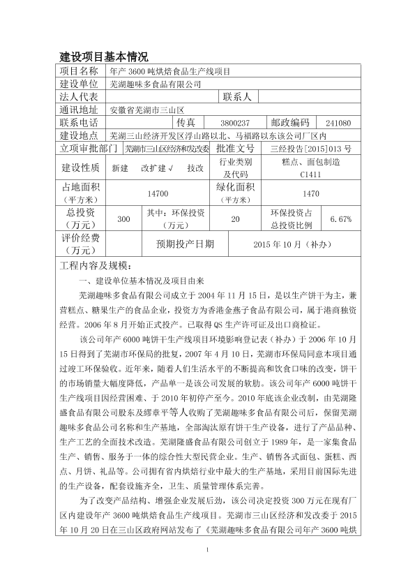 芜湖趣味多食品有限公司年产3600吨烘焙食品生产线项目环境影响报告表公示932245072.pdf