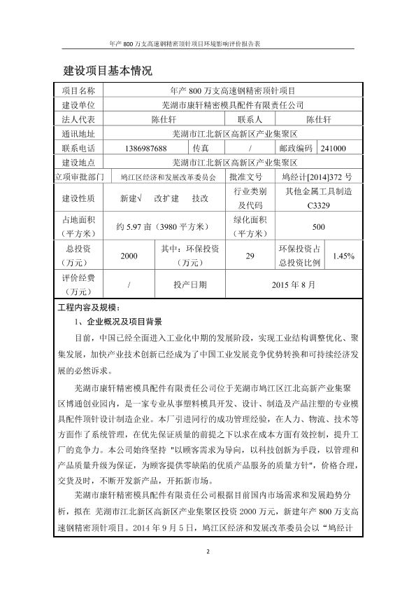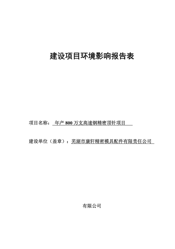 芜湖市康轩精密模具配件有限责任公司年产 800 万支高速钢精密顶针项目环境影响报告表公_1069538.pdf