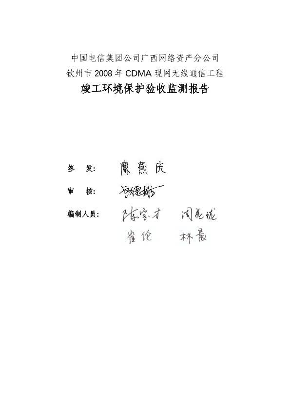 中国电信集团公司广西网络资产分公司钦州市2008年cdma现网无线通信工程环境保护设施竣工验收审批866024600.pdf
