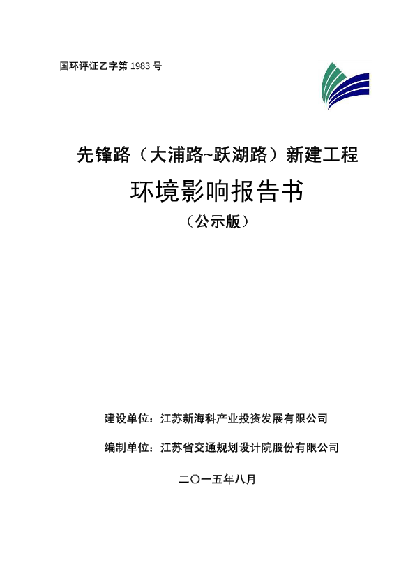2、关于受理江苏新海科产业投资发展有限公司金桥路(池月路-昌圩路)新建工程环境影响报告书情况的公示983098652