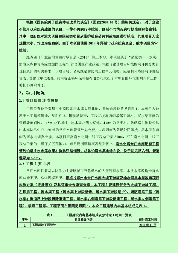 1、中原区-郑州市常庄水库大坝下游坡及输水洞尾水渠改造工程报告表6099