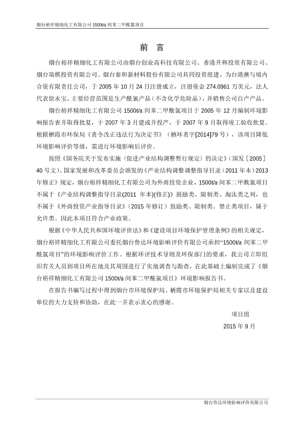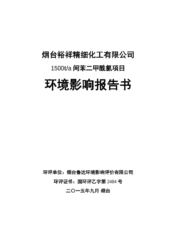 烟台裕祥精细化工有限公司1500t间苯二甲酰氯项目环境影响后评价报告书_1217459.pdf