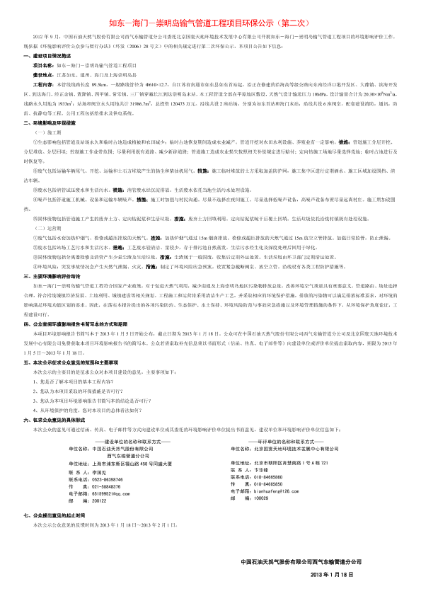 如东-海门-崇明岛输气管道工程项目环保公示(第二次)(pdf格式)337144003