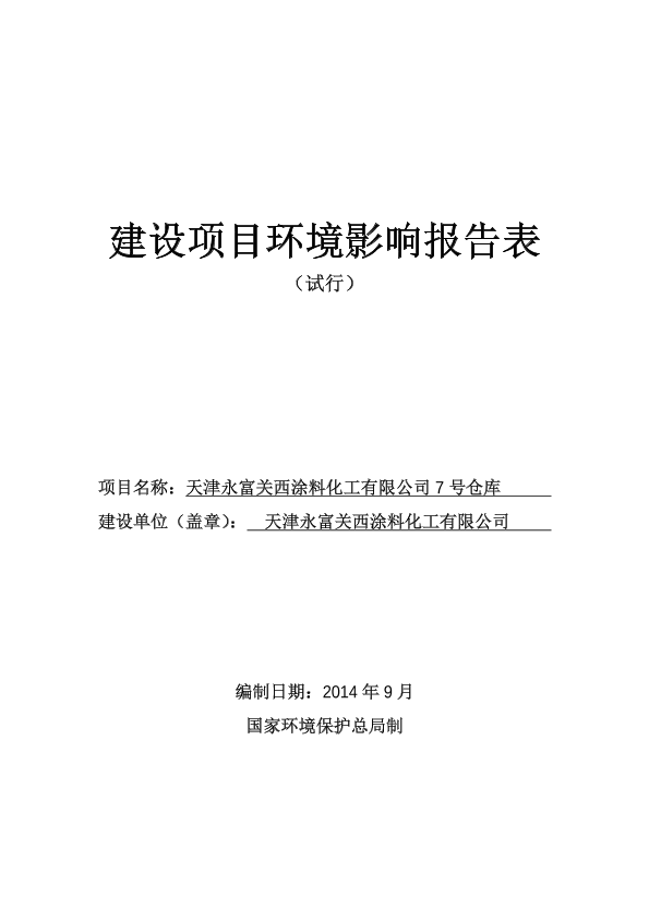 天津永富关西涂料化工有限公司7号仓库项目环境影响报告表受理情况8555.pdf