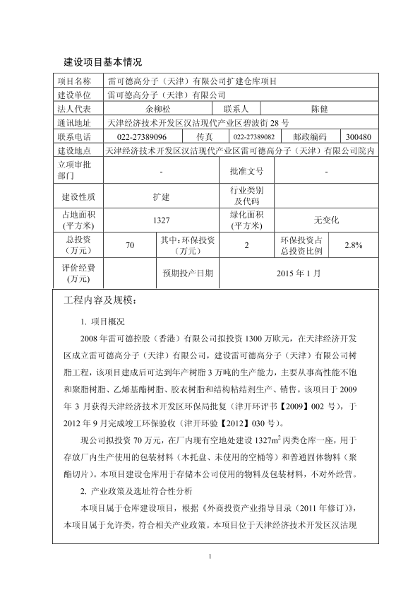 1、天津科瑞达涂料化工有限公司扩建仓库项目环境影响报告表受理情况公示-天津经济技术开发区环境保护局2284